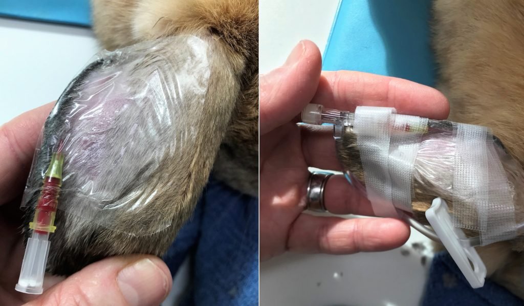 Rabbit ears are very sensitive and some rabbits will not eat or just be generally cranky if their catheter or bandage are uncomfortable! It is important that the catheter, dressing and bandage are comfortable and light.