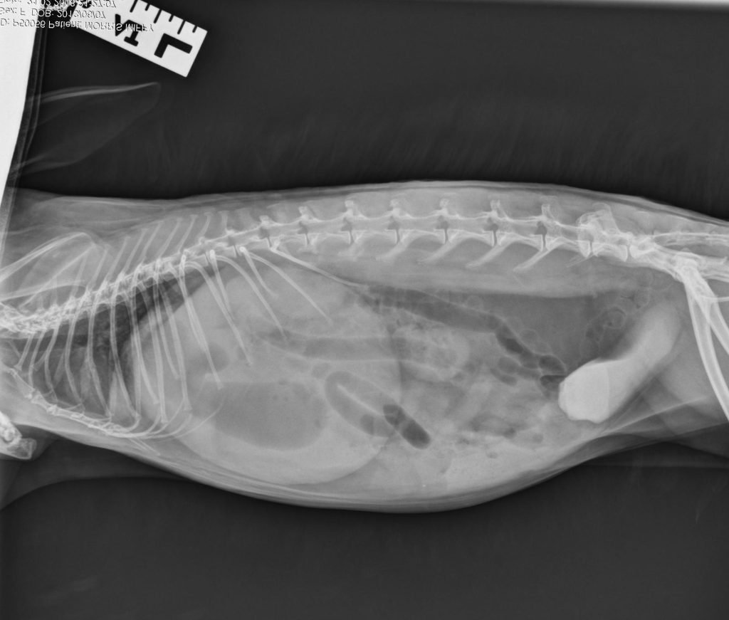 Attached is a radiograph of a rabbit with limited opportunity to exercise due to hutch confinement. Yes, that is a large amount of calcium sludge in the bladder, not contrast material!
